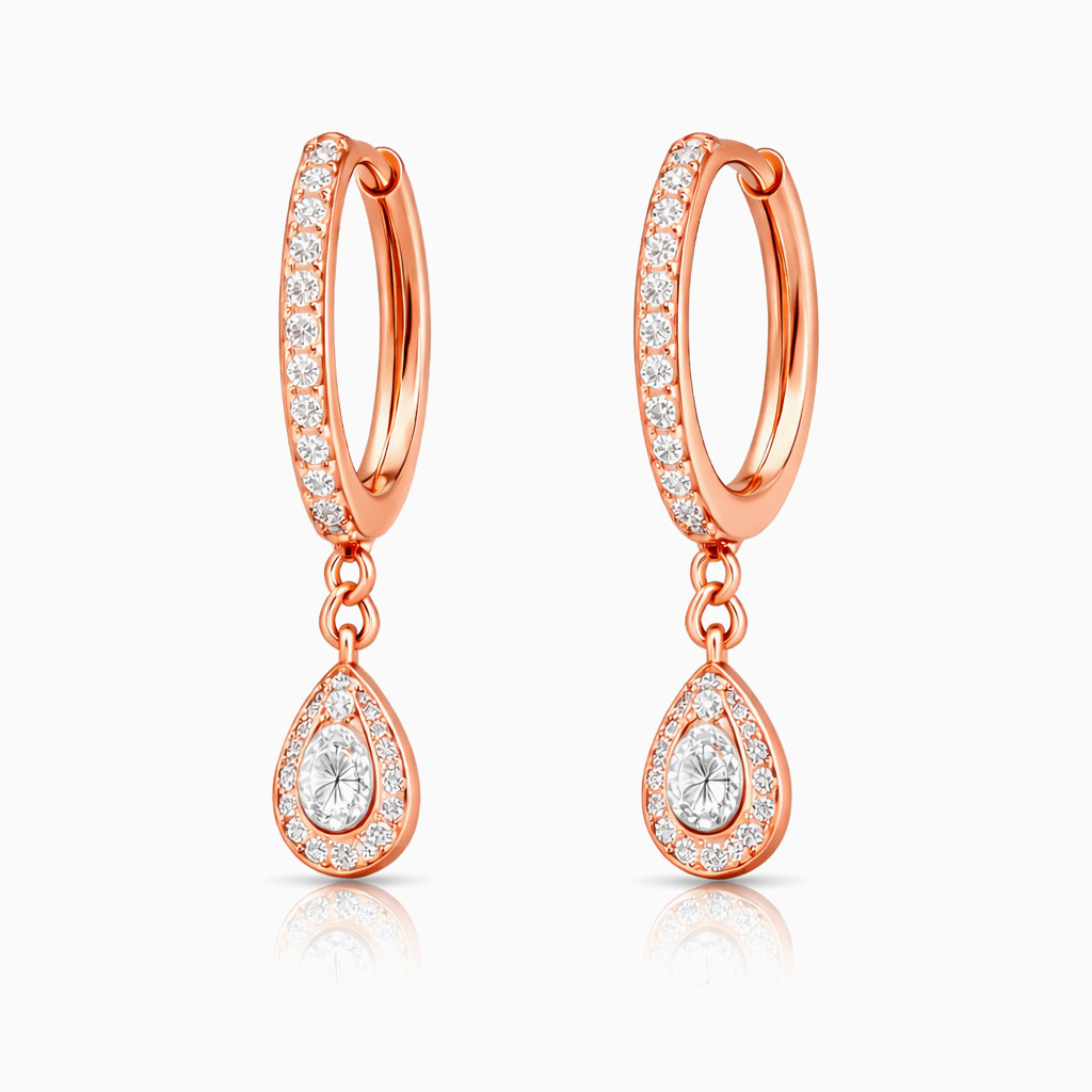 Elegant Diamond Teardrop Hoop Earrings in Rose Gold