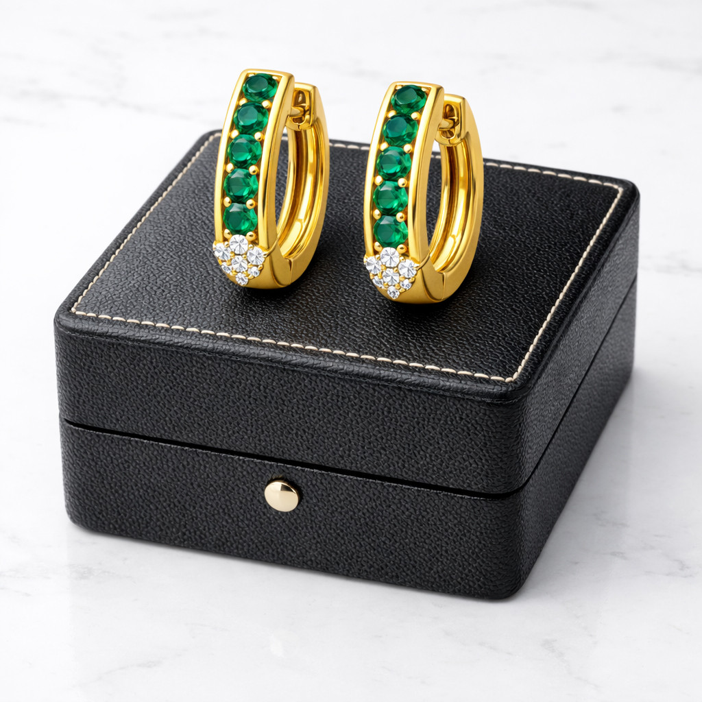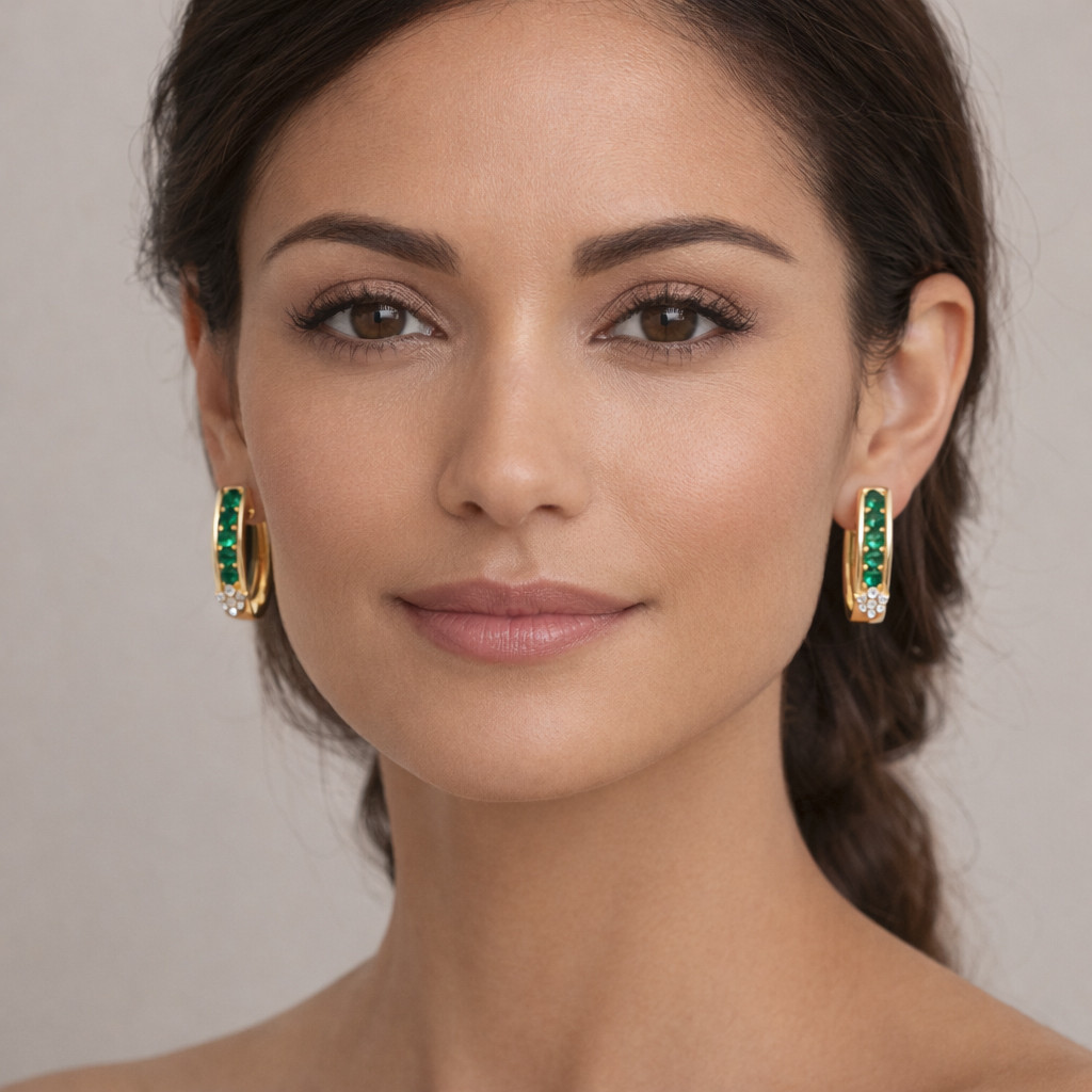 The compact hoop silhouette offers a contemporary look while remaining lightweight and comfortable for daily wear. Perfect for both casual elegance and special occasions, these emerald and diamond earrings bring a touch of luxury to any jewelry collection.