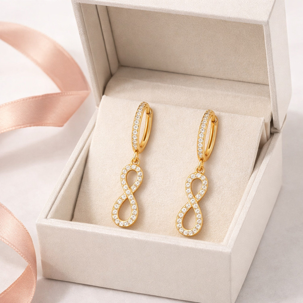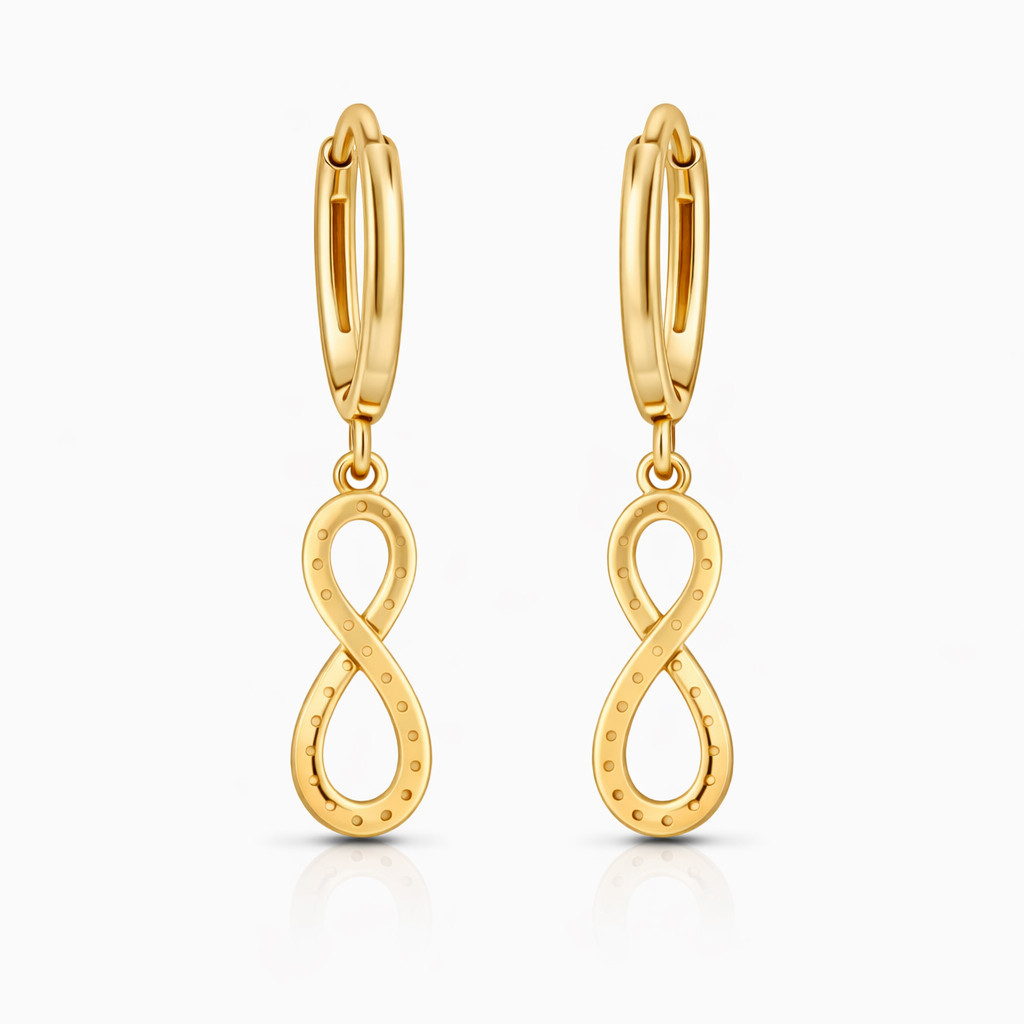 Elegant and timeless, these Infinity Spark Diamond Drop Earrings feature a graceful infinity motif suspended from pavé diamond-set gold hoops. Crafted for everyday luxury, they add refined sparkle and modern sophistication to any look.