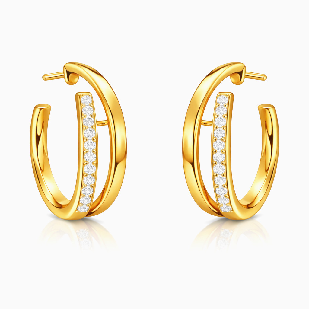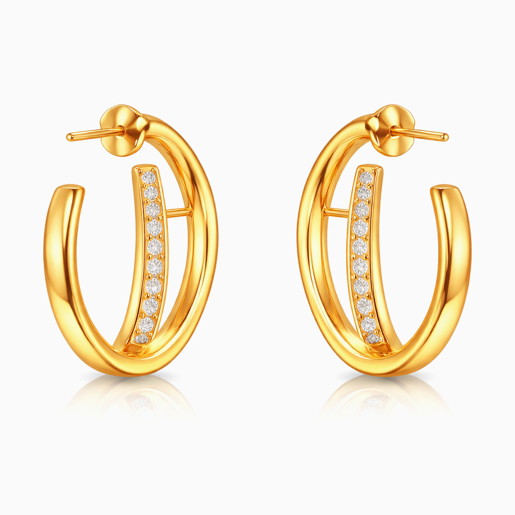 Elevate your everyday elegance with these modern open hoop earrings crafted in polished yellow gold. Featuring a sleek curved silhouette and a refined pavé diamond bar, this contemporary design blends minimal luxury with timeless sophistication—perfect for both daily wear and special occasions.