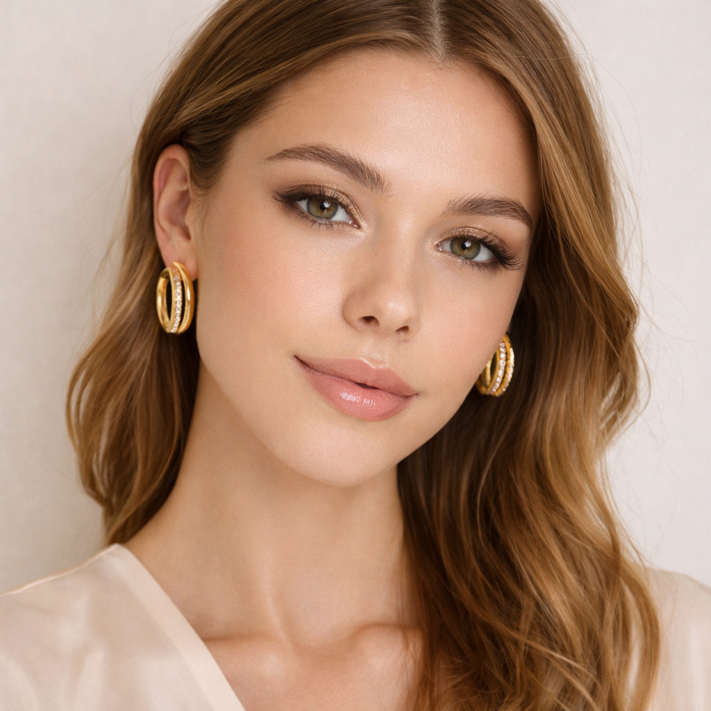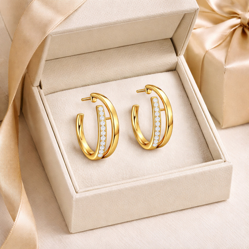 Designed for the modern woman, these earrings offer a perfect balance of minimalism and statement style. Their clean lines and contemporary aesthetic make them versatile enough to transition seamlessly from daytime elegance to evening glamour. A secure post-back closure ensures comfortable, all-day wear, while the refined finish reflects premium craftsmanship ideal for luxury gifting or personal indulgence.